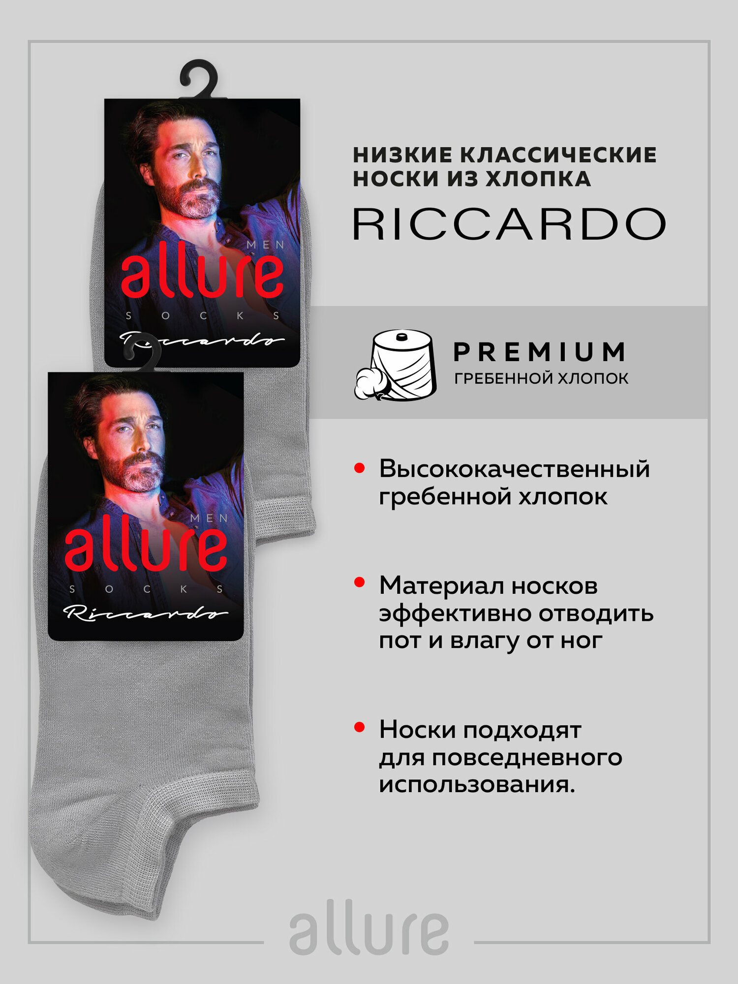 Носки м. ALR RICCARDO СВ.серый 3 (39-41) спайка 2 шт, носки мужские, классические, укороченные, высокие, длинные, хлопок, набор мужских носков