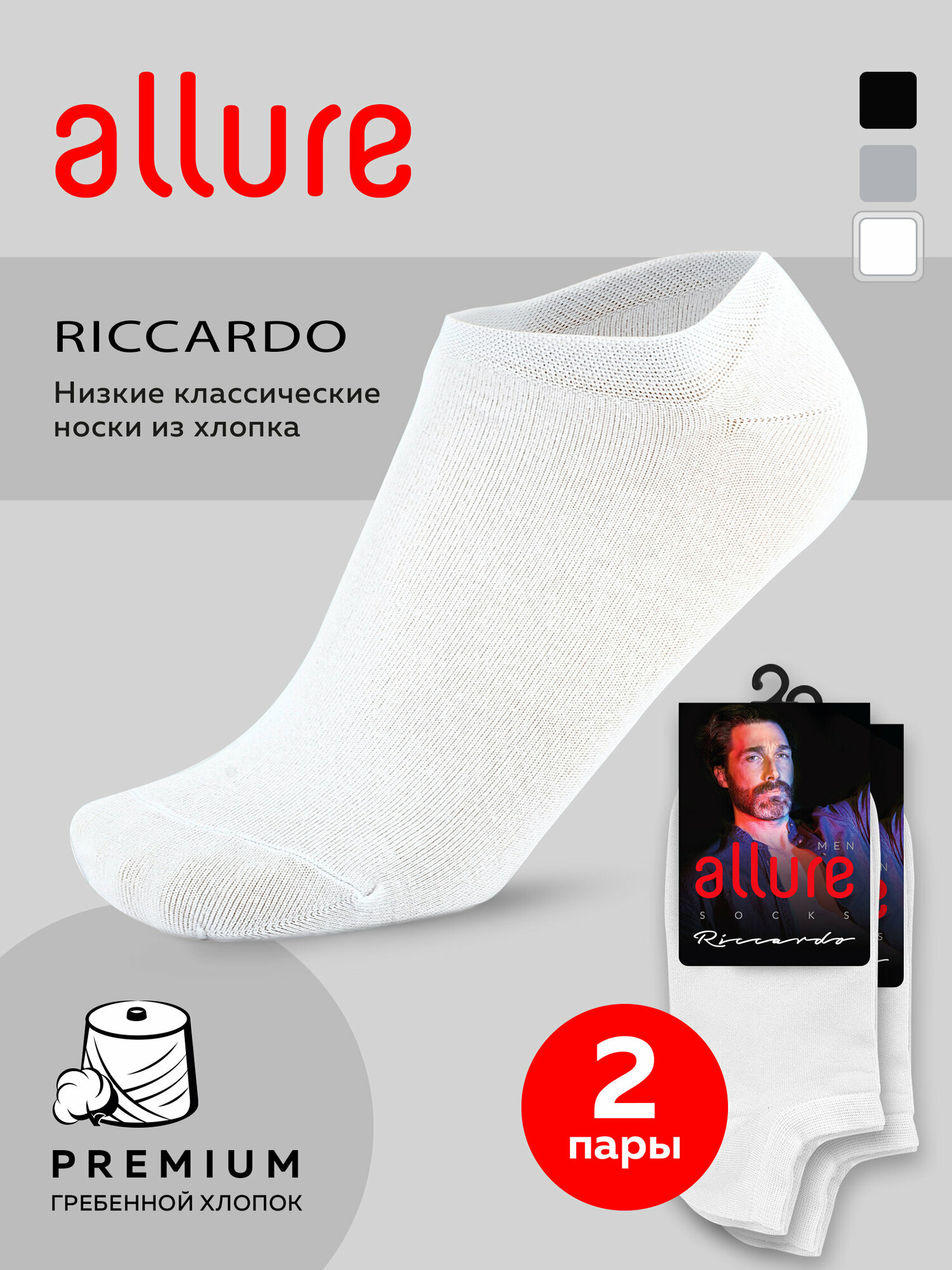 Носки м. ALR RICCARDO белый 3 (39-41) спайка 2 шт, носки мужские, классические, укороченные, высокие, длинные, хлопок, набор мужских носков