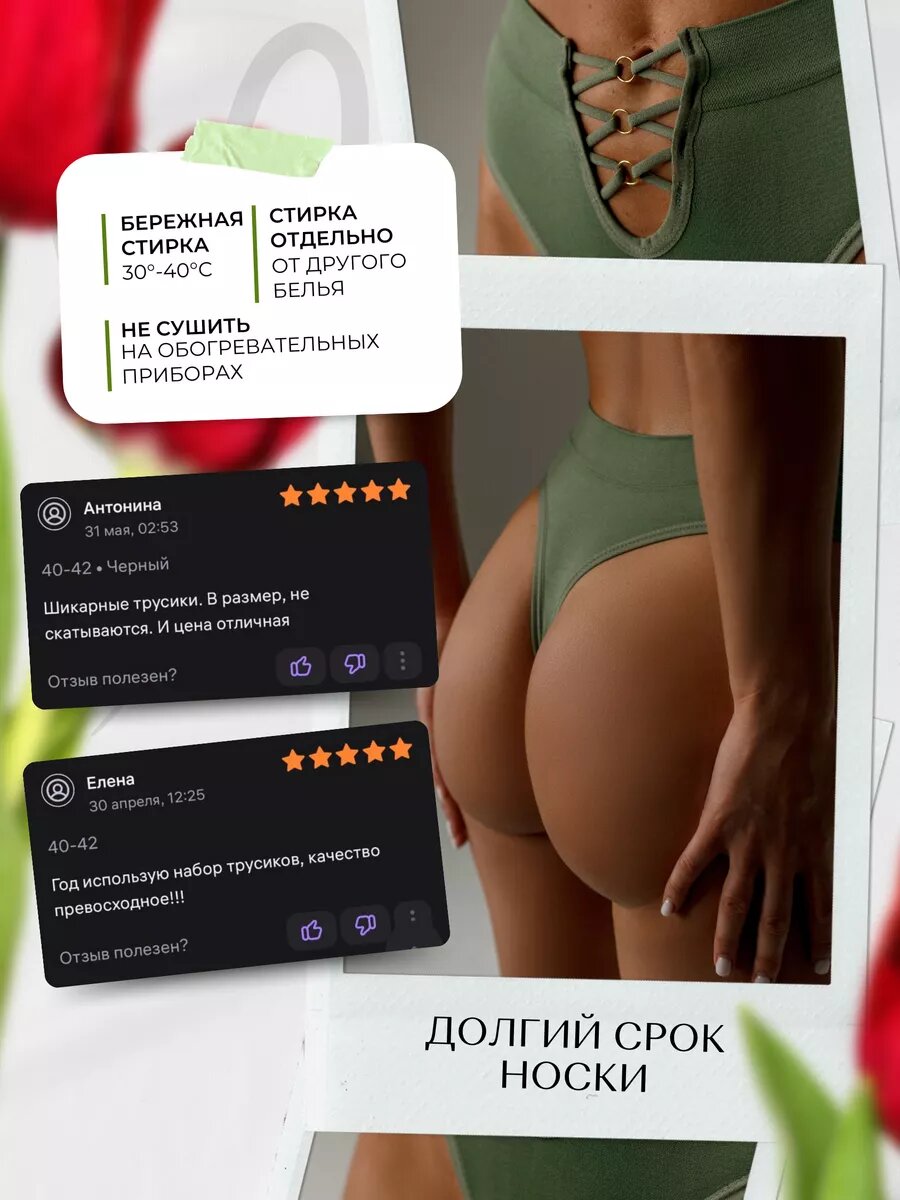 Ниже Вы можете прочитать отзывы на Бесшовные трусы стринги высокие набор 5 шт, ознакомится с подробными характеристиками, посмотреть интересные обзоры и фотографии на Бесшовные трусы стринги высокие набор 5 шт.