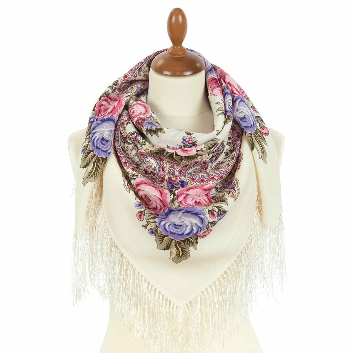 Платок шерстяной Павловопосадские платки На солнечной поляночке 2, белый, 89 х 89 см