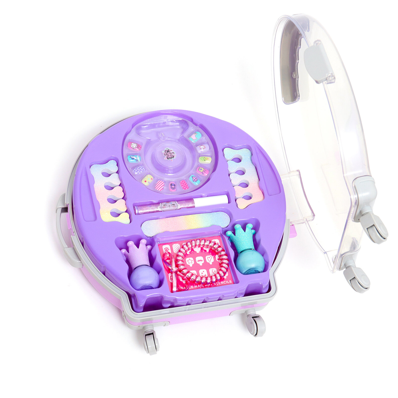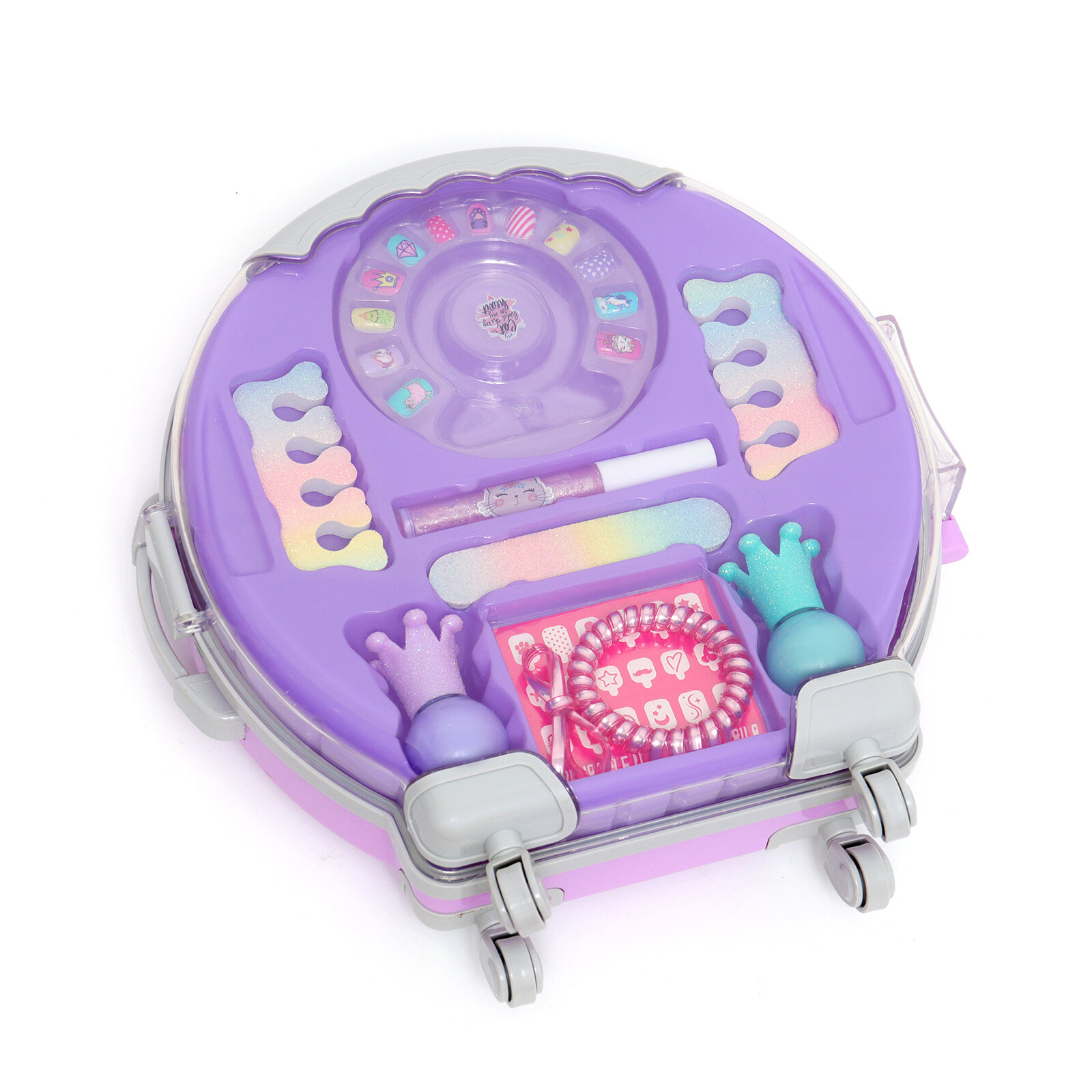 Набор косметики для девочки "Чемодан на колёсах", сиреневый, с накладными ногтями