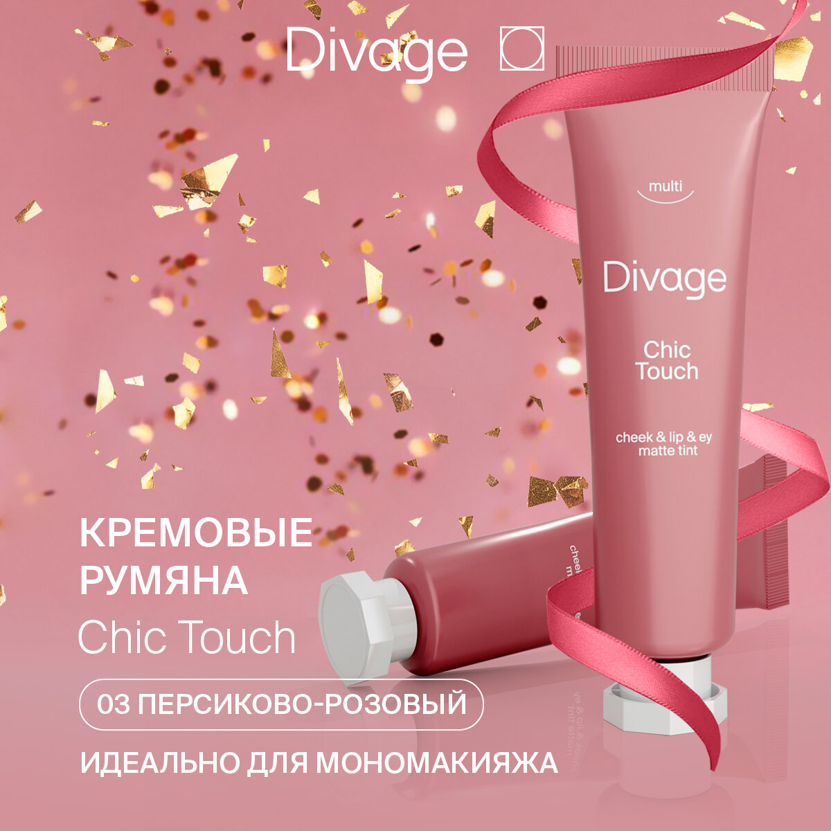 Тинт кремовый матовый для щек, губ и глаз Divage Chic Touch Matte 03 персиково-розовый, 10мл