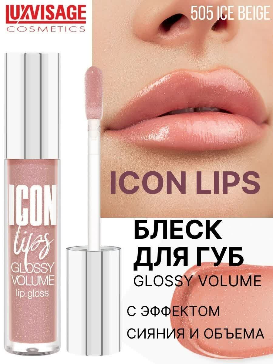 Блеск для губ LUXVISAGE ICON LIPS с эффектом объема и сияния тон 505 ice beige