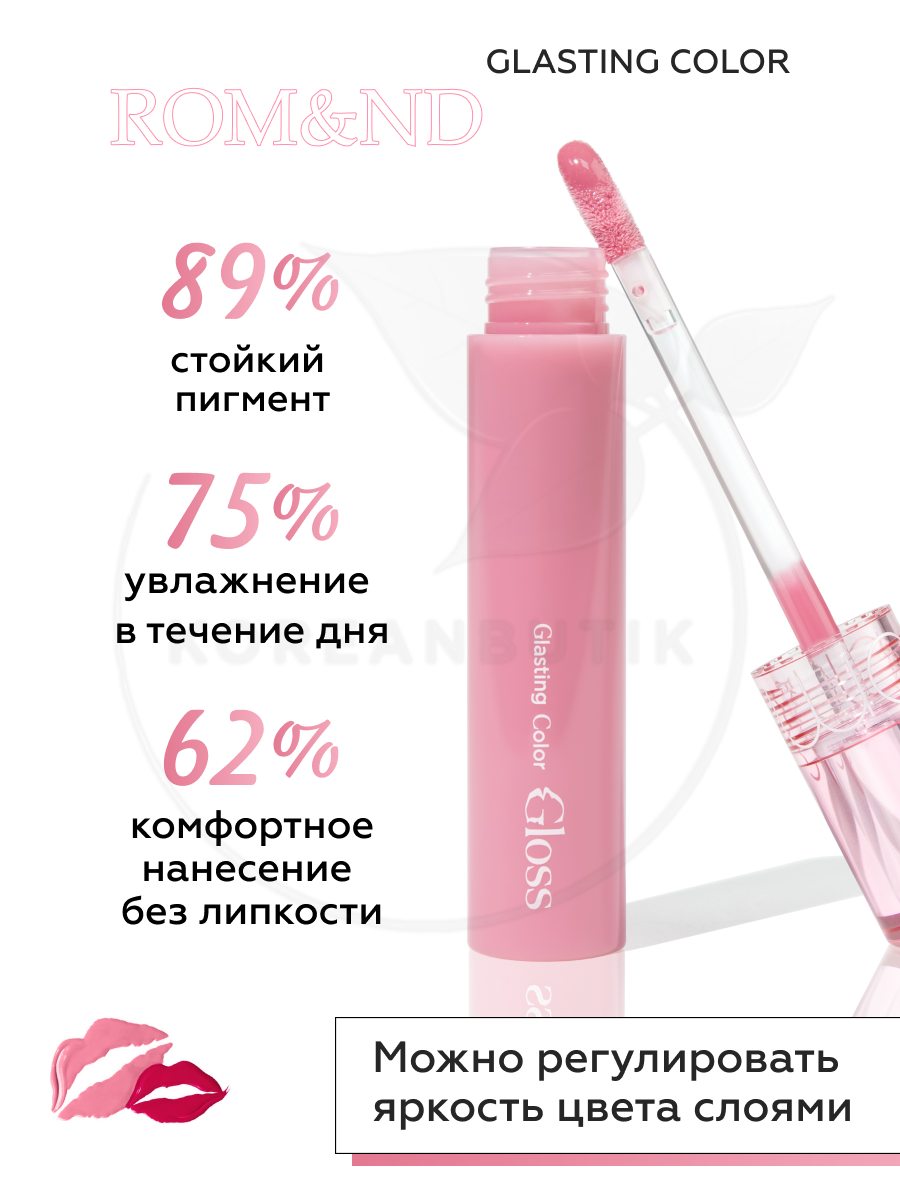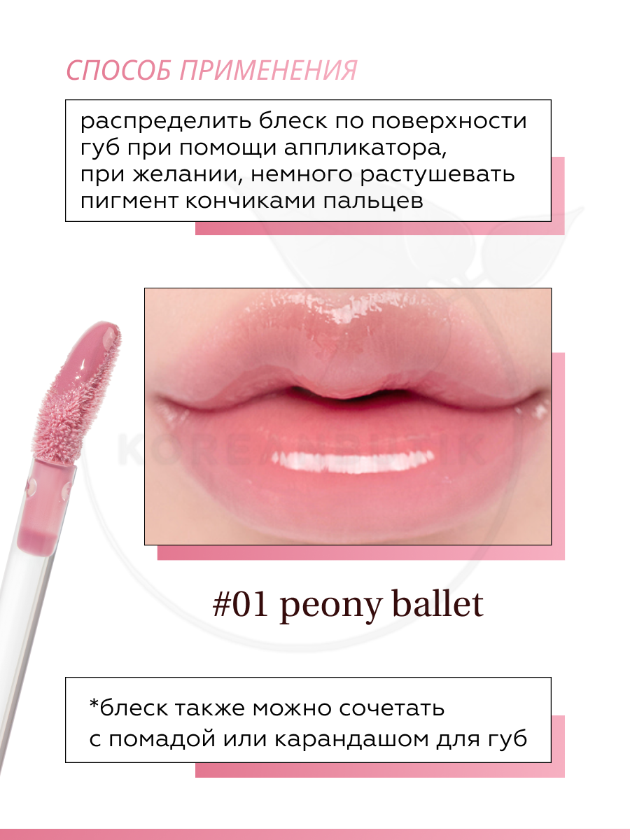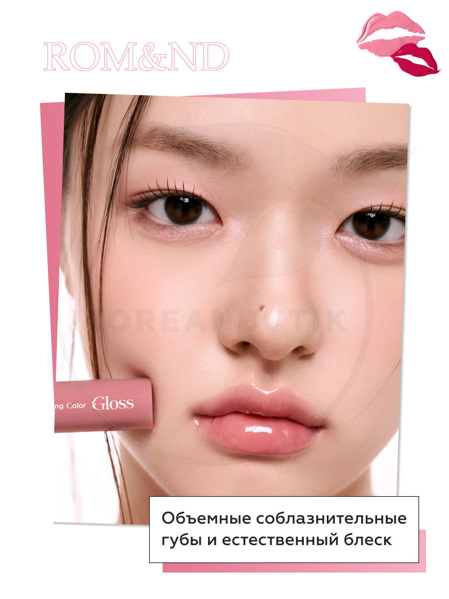 Розовый глянцевый блеск для губ | ROM&ND Glasting Color Gloss 01 Peony Ballet интересное: