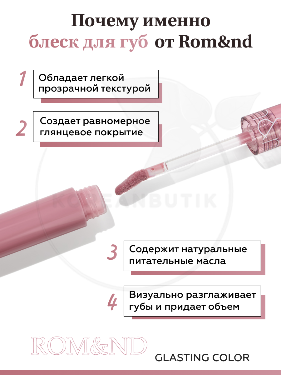 Блеск для губ глянцевый | ROM&ND Glasting Color Gloss 05 Dim Mauve интересное: