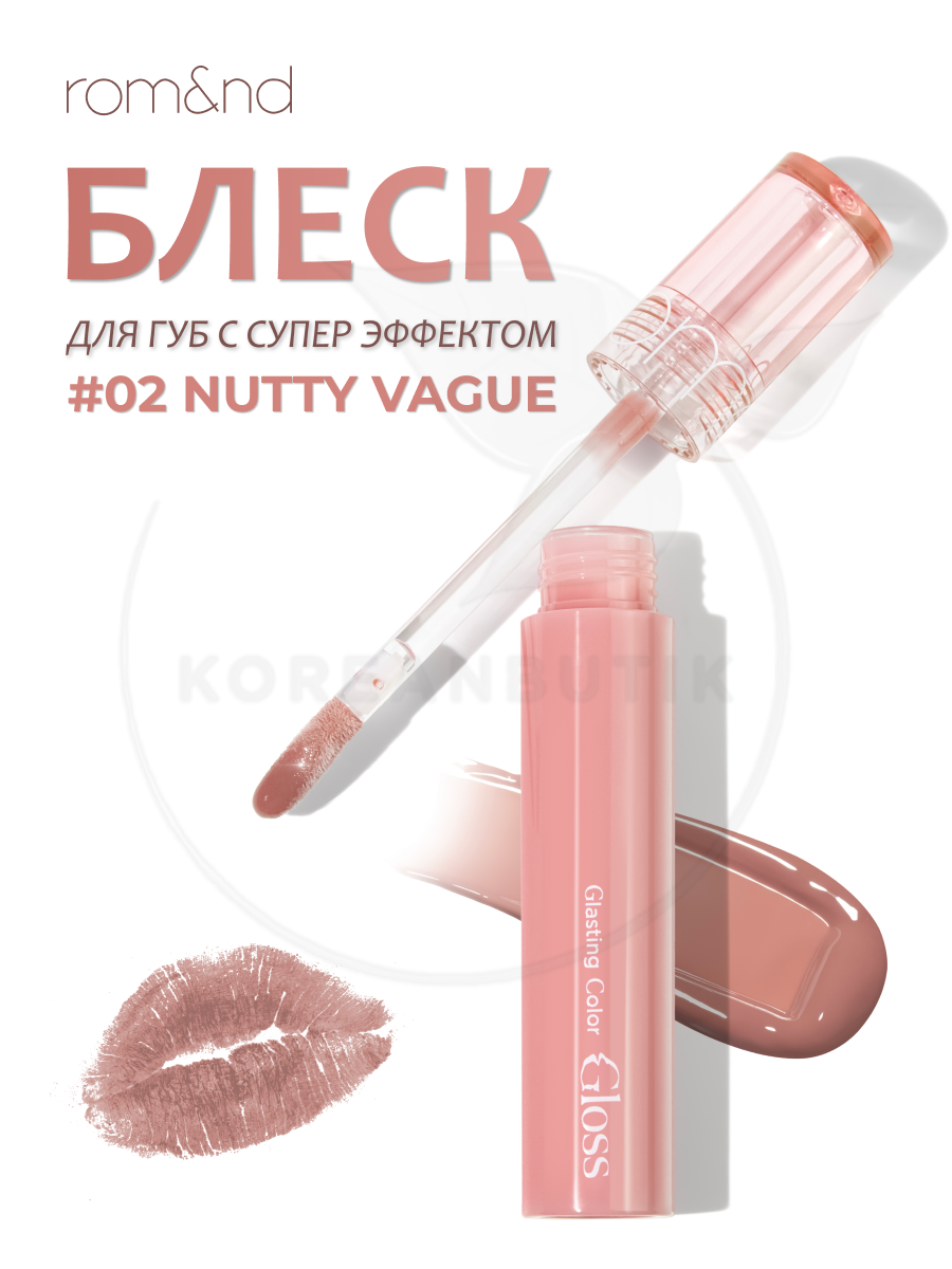 Блеск для губ в ореховом оттенке | ROM&ND Glasting Color Gloss 02 Nutty Vague интересное: