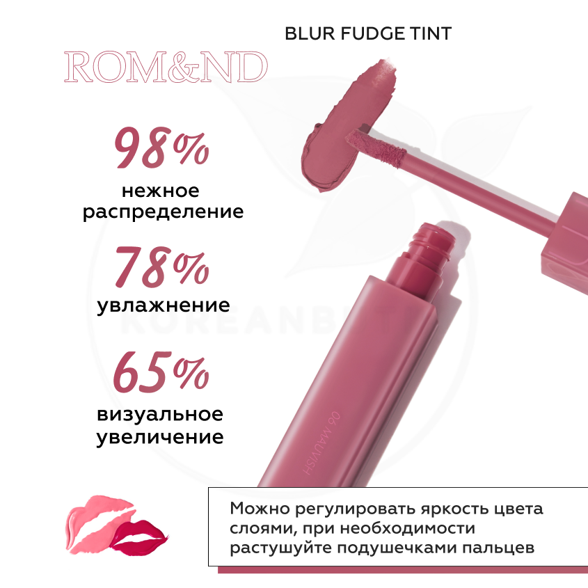 СохранитьТинт матовый винный для губ | ROM&ND Blur Fudge Tint 06 Mauvish интересное: