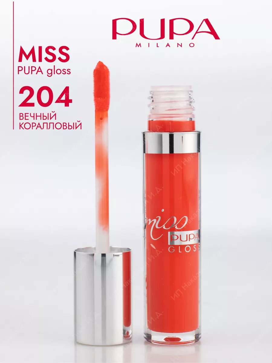 Pupa Блеск для губ Miss Pupa Gloss, тон 204 вечный коралловый, красный