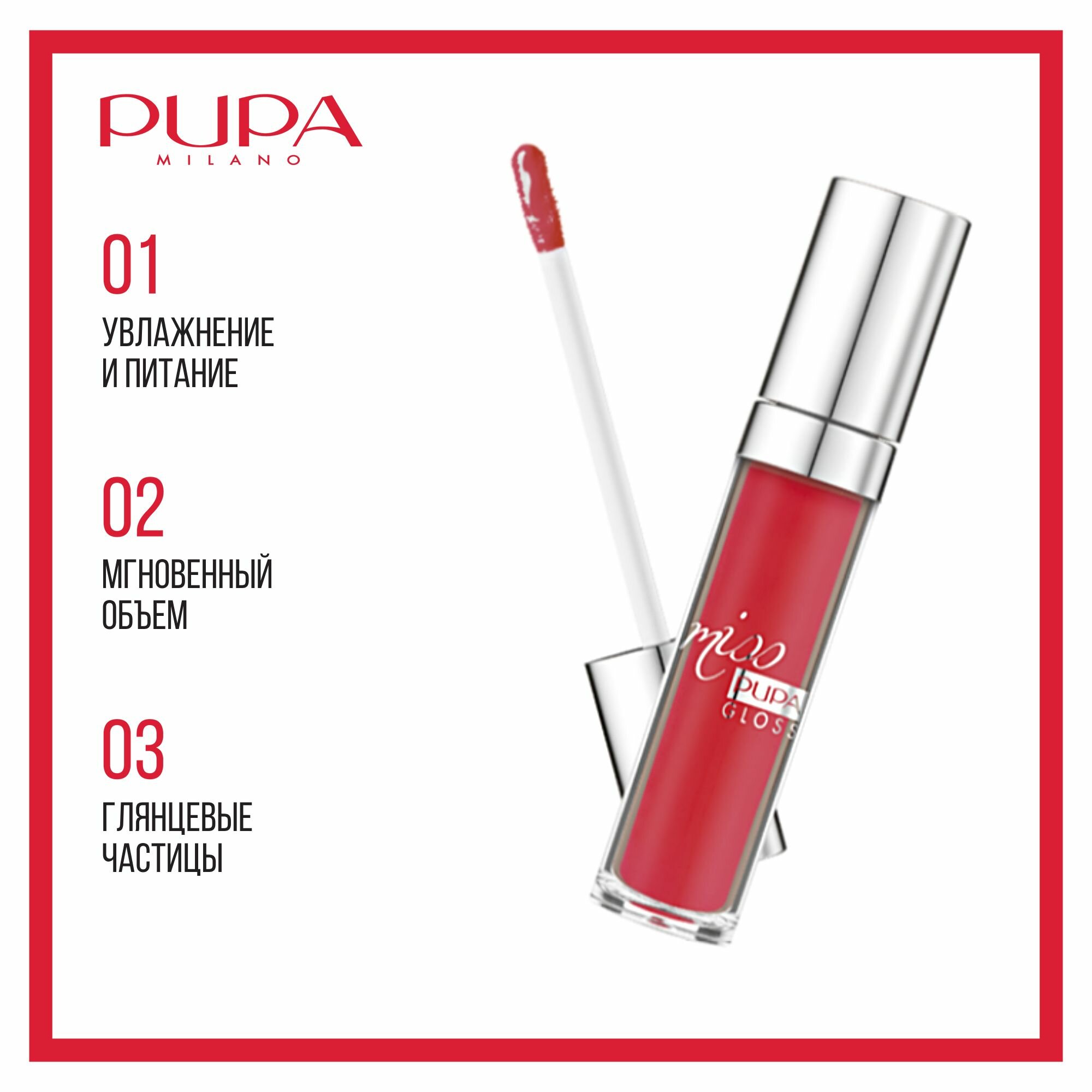 Pupa Блеск для губ Miss Pupa Gloss, тон 305 значительный красный