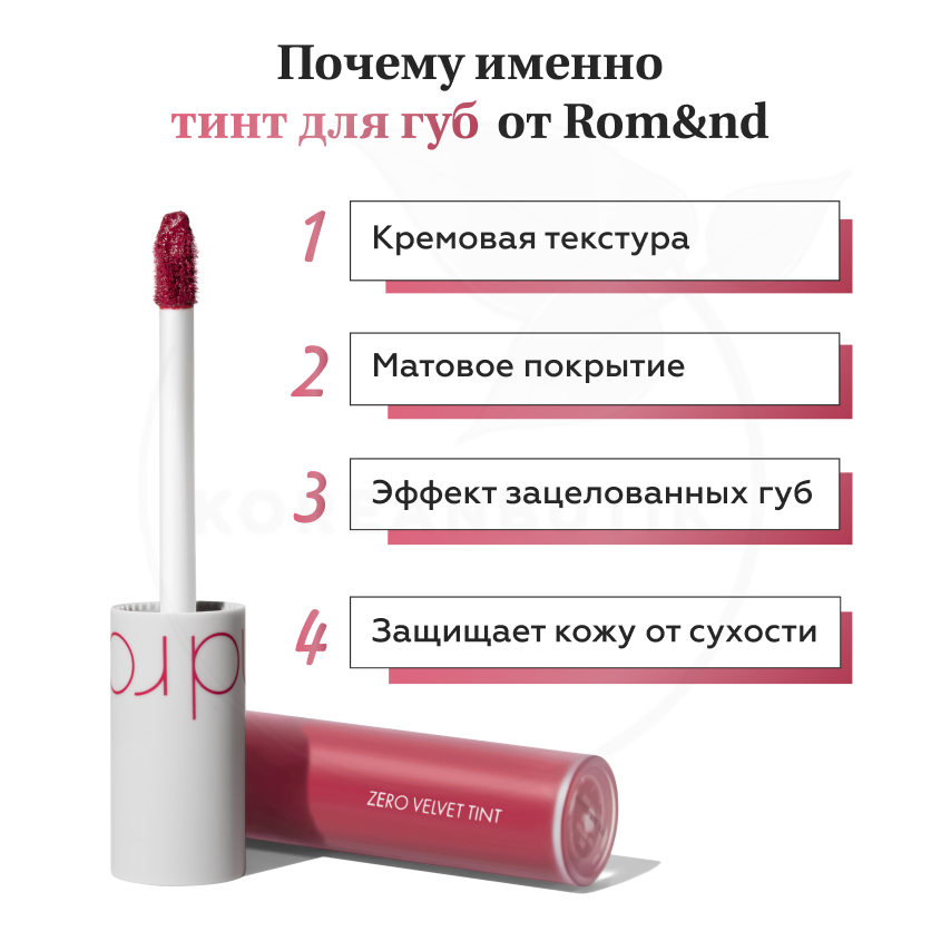 СохранитьТинт бархатный для губ темно-малинового цвета с матовым финишем | ROM&ND Zero Velvet Tint 08 Icy интересное: