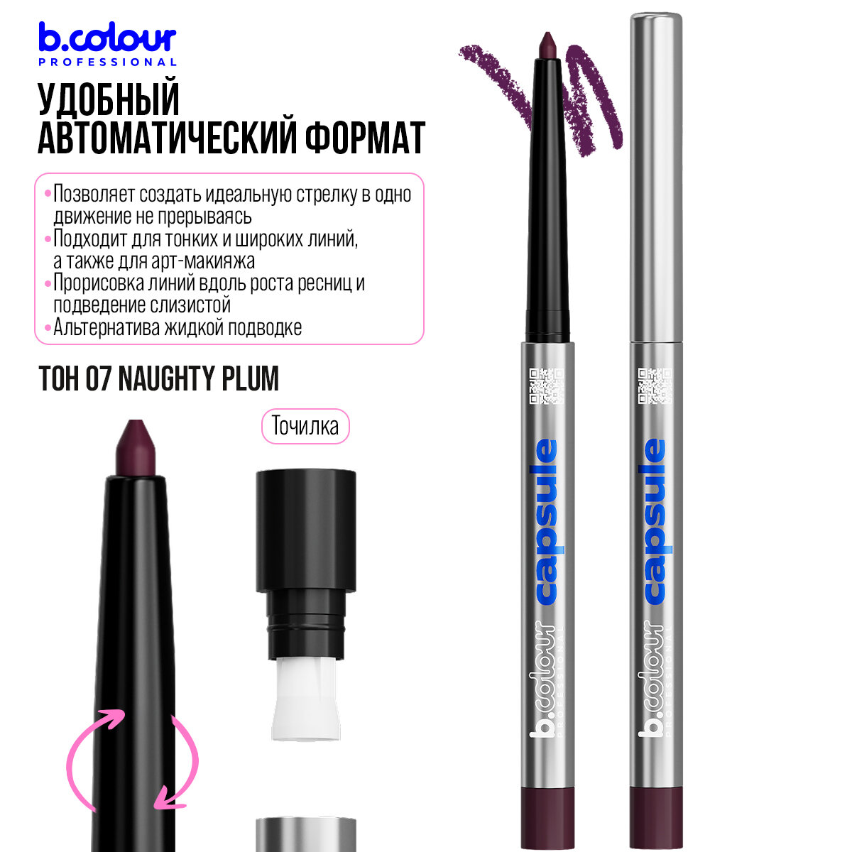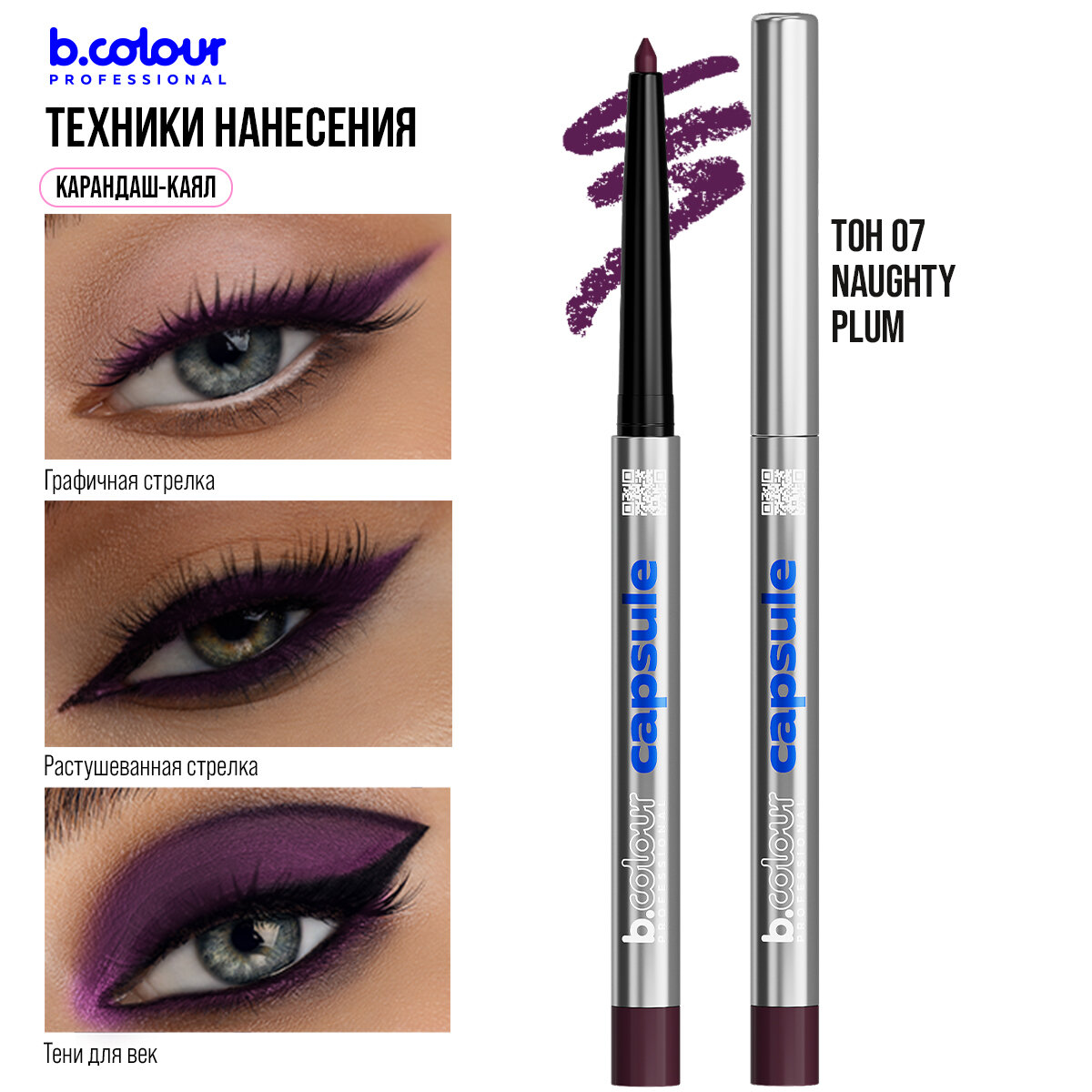 Карандаш для глаз B.COLOUR PROFESSIONAL CAPSULE фиолетовый каял для слизистой гелевый автоматический водостойкий 07 Naughty plum