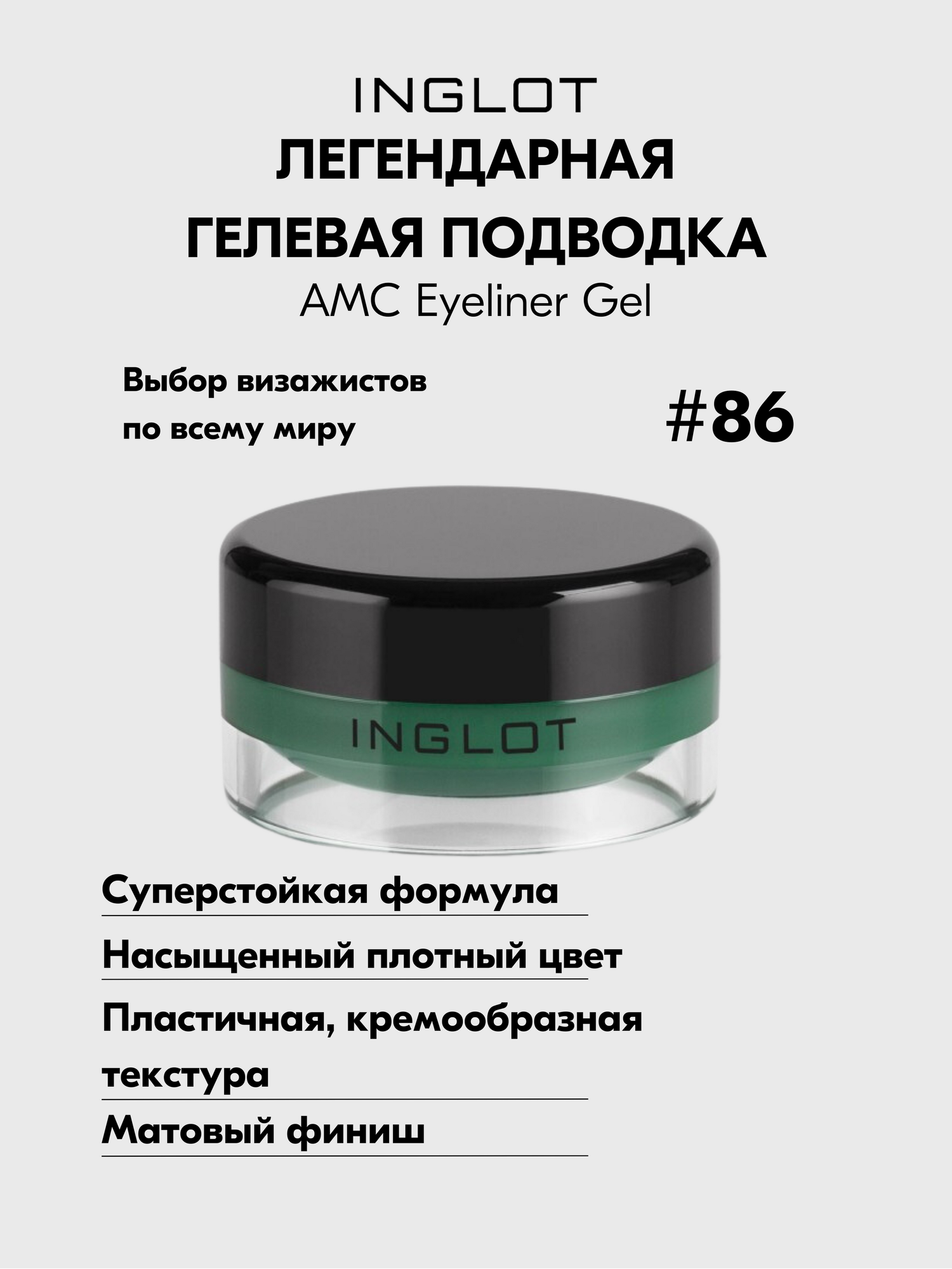 INGLOT AMC Eyeliner Gel Гелевая подводка для глаз зеленый 86