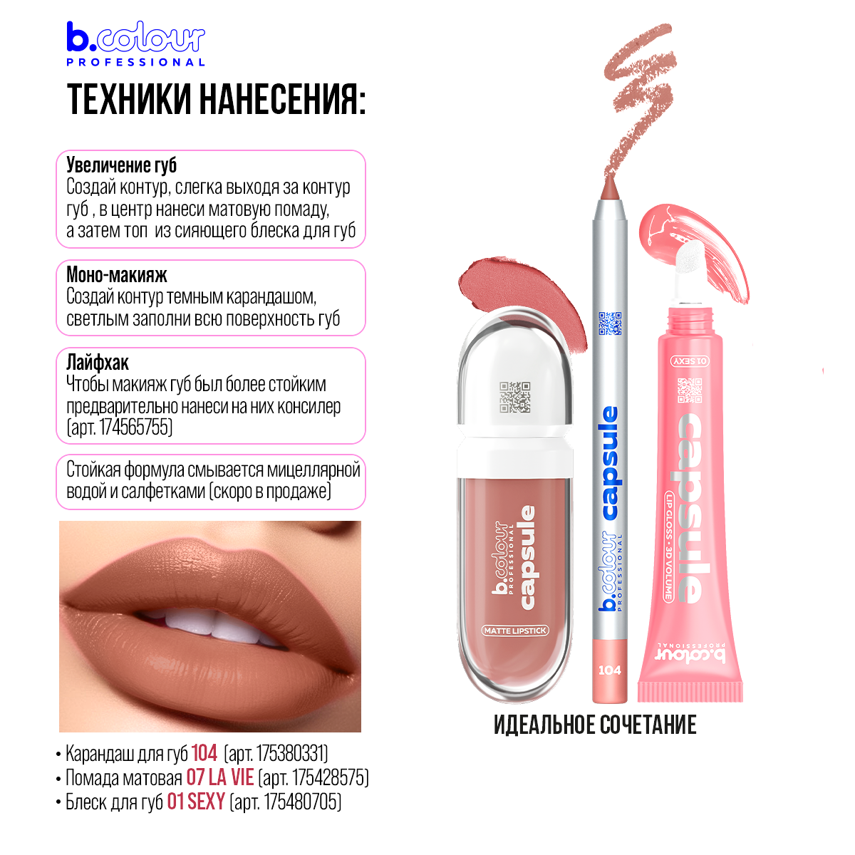 СохранитьКарандаш для губ нюдовый матовый B.COLOUR PROFESSIONAL CAPSULE 104 интересное: