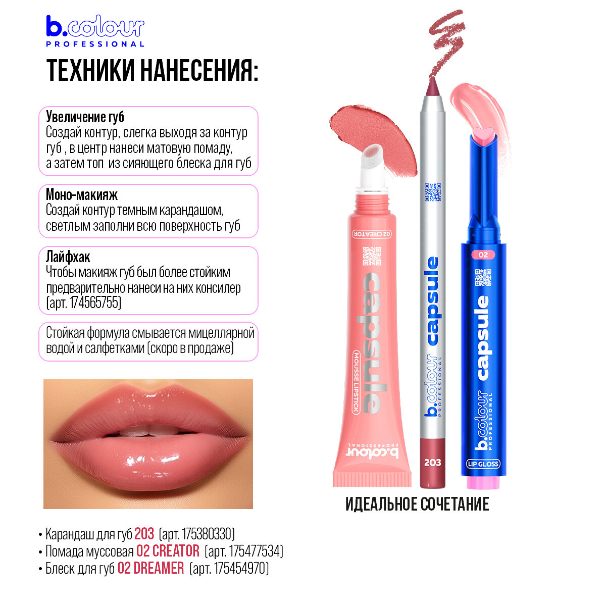 СохранитьКарандаш для губ матовый стойкий B.COLOUR PROFESSIONAL CAPSULE розовый нюдовый 203 интересное: