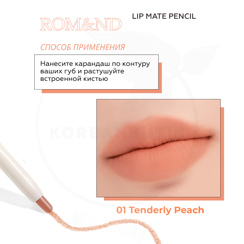 Карандаш для губ 01 | ROM&ND Lip Mate Pencil 01 Tenderly Peach