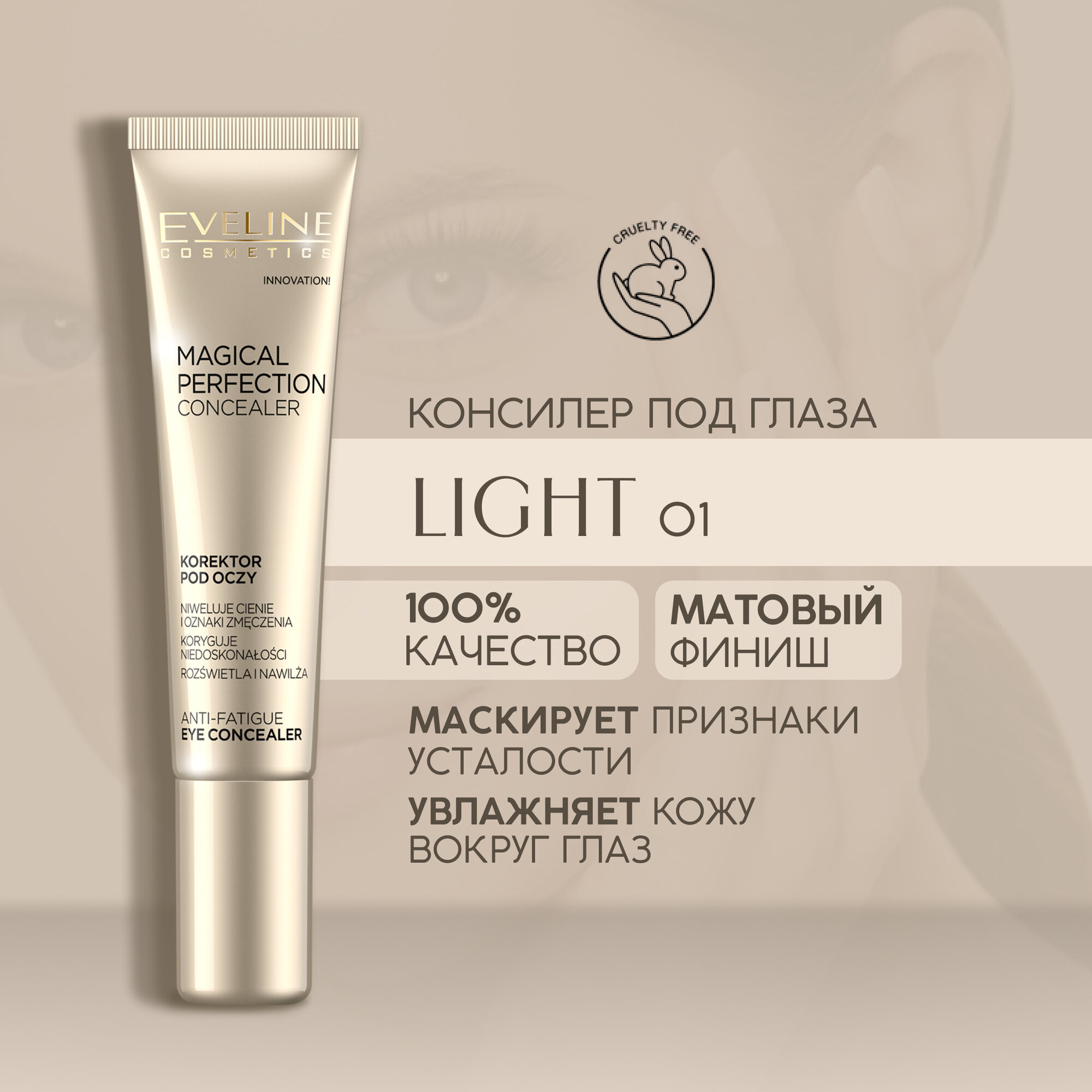 Купить Консилер для лица `EVELINE` Magical Perfection (от темных кругов и признаков усталости) тон 01 light, 15мл