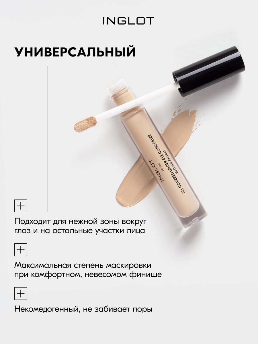 СохранитьКонсилер INGLOT плотный с мягкой ухаживающей формулой под глаза и для лица ALL COVERED CONCEALER N104 интересное: