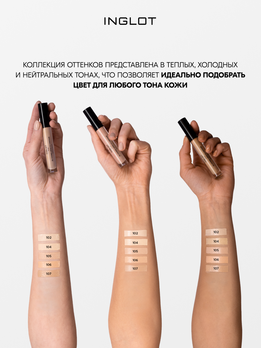 | Цвет товара | 102 светлый теплый нейтралилующий, 104 светло-бежевый, 105 бежевый, 106 Легкий персик для средних тонов, 107 Смуглый, нейтральный |
