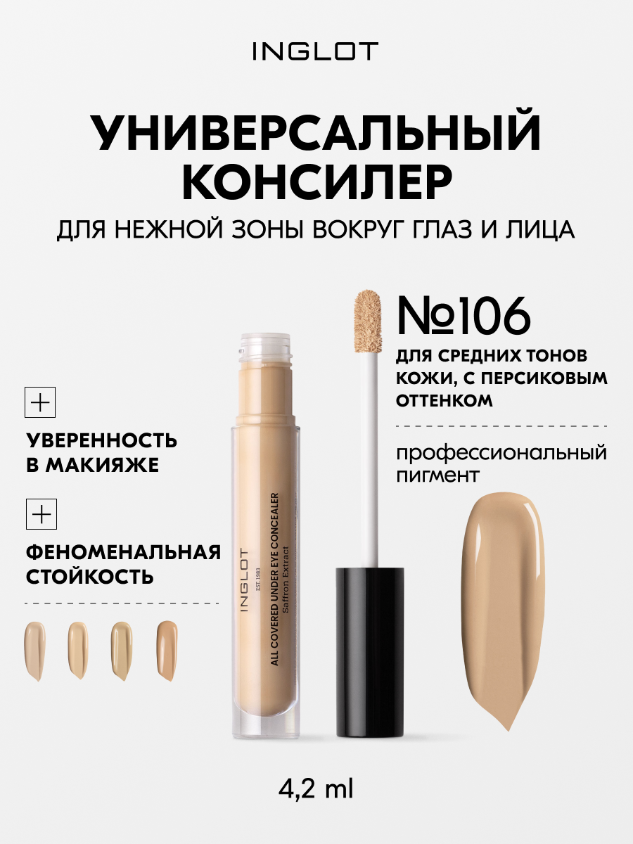 Купить Консилер INGLOT плотный с мягкой ухаживающей формулой под глаза и для лица ALL COVERED CONCEALER N106