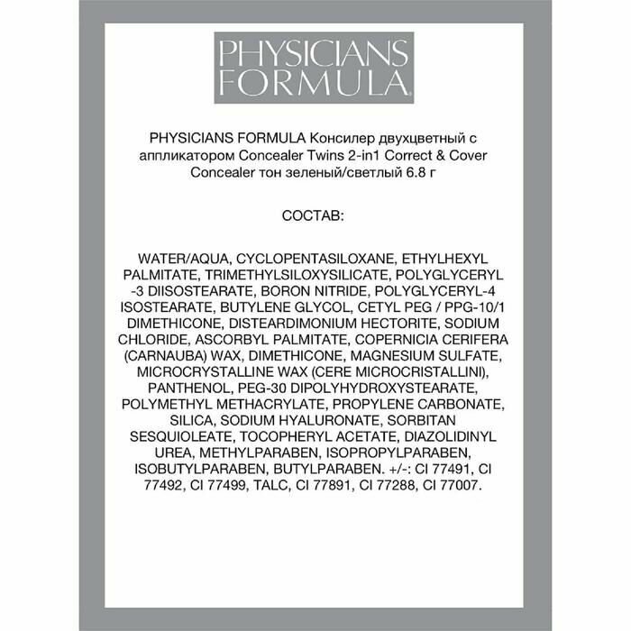 СохранитьКонсилер PHYSICIANS FORMULA Двухцветный с аппликатором Concealer Twins 2 in 1 Correct & Cover Cream Concealer, зеленый/светлый, 6,8 г интересное: