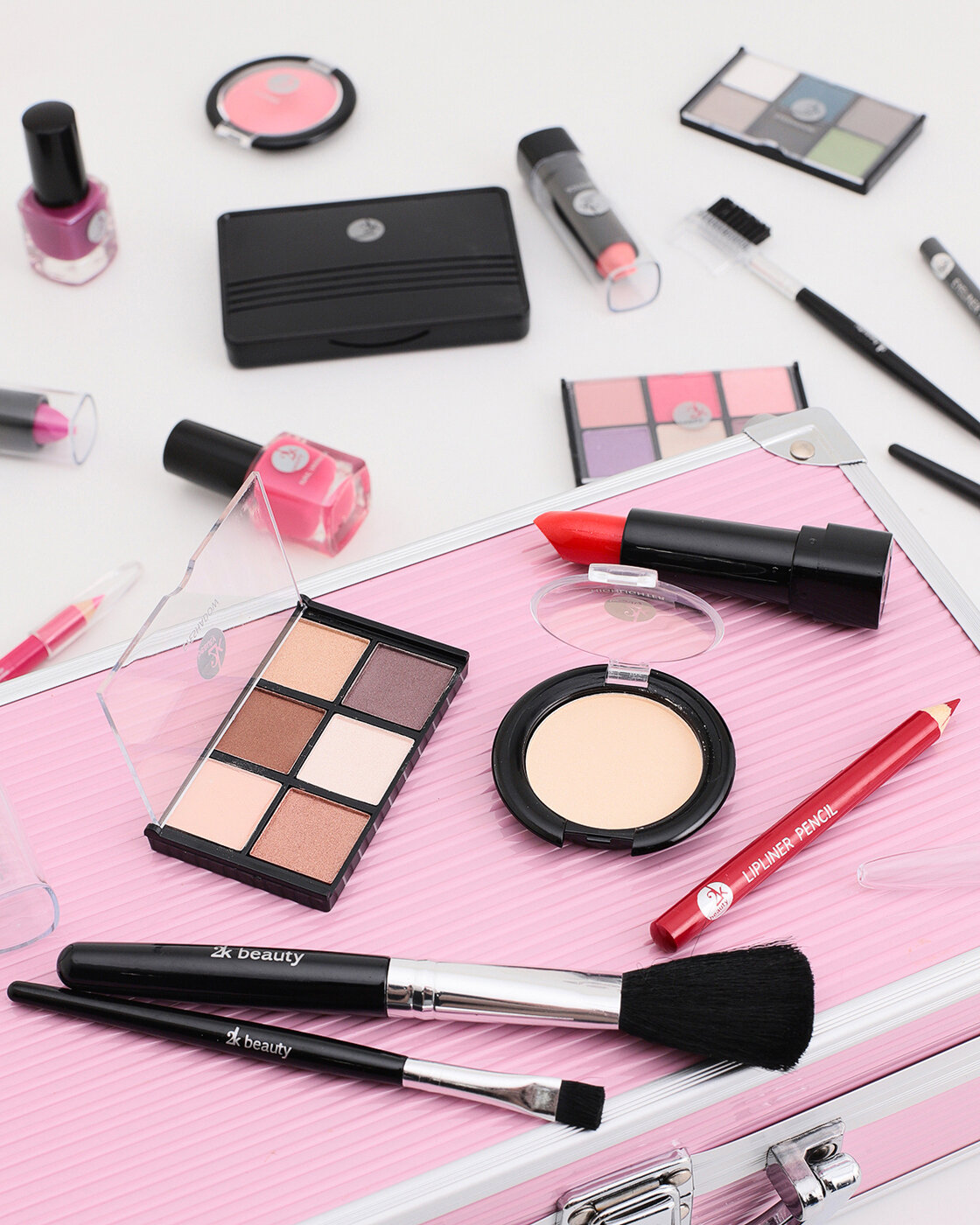Купить Набор декоративной косметики для макияжа 2K Beauty в органайзере чемодане / состав: тени для век, пудра румяна, помада, лак для ногтей / Подарочный косметический бьюти бокс №14 (New York Pink)
