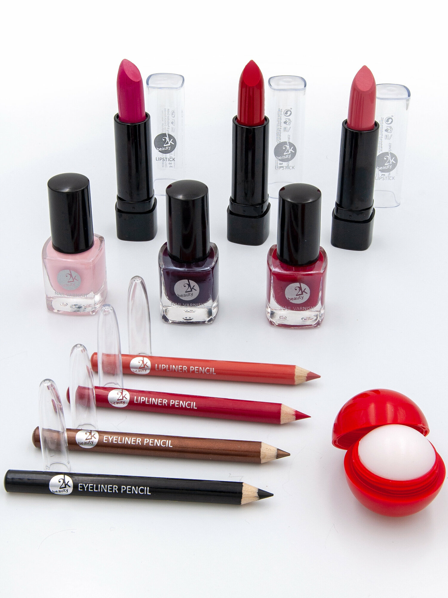 | В наборе | тени для век 24 шт. x 0,9г., лак для ногтей 3 шт. х 5мл., румяна для лица 2 шт. х 3г., пудра для лица (хайлайтер) 1 шт. х 3г., помада для губ 3 шт. х 3г., карандаш для губ 2 шт. х 0,7г., карандаш для глаз 2 шт. х 0,7г., блеск для губ 1 шт. х 2,8г |
