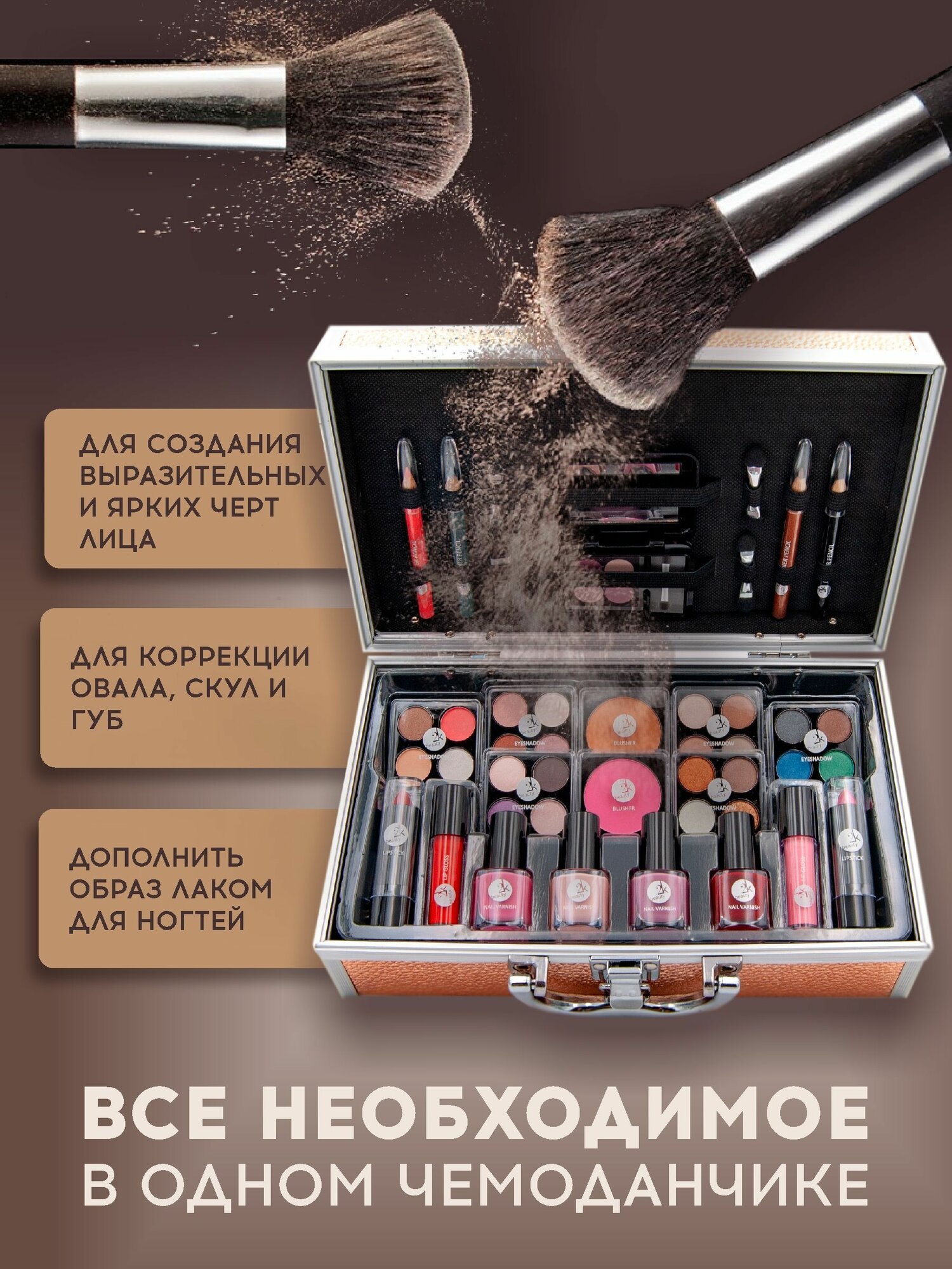 Купить Бьюти бокс 2K Beauty Набор косметики для подарка включает палетка для макияжа, тени для век, блеск для губ, помада, румяна, лак для ногтей / Косметический набор №27 (Prague)
