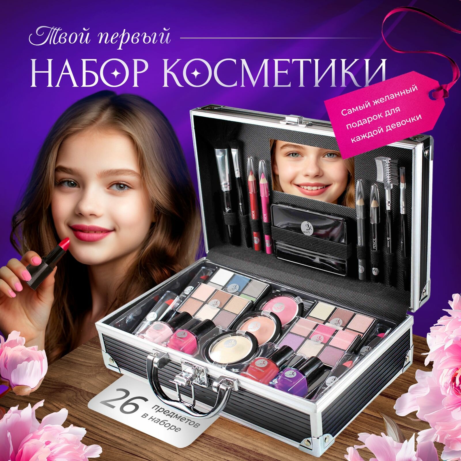 Бьюти бокс / чемоданчик 2K Beauty с косметикой: тени, румяна, помада, лак для ногтей / Подарочный косметический набор №13 интересное: