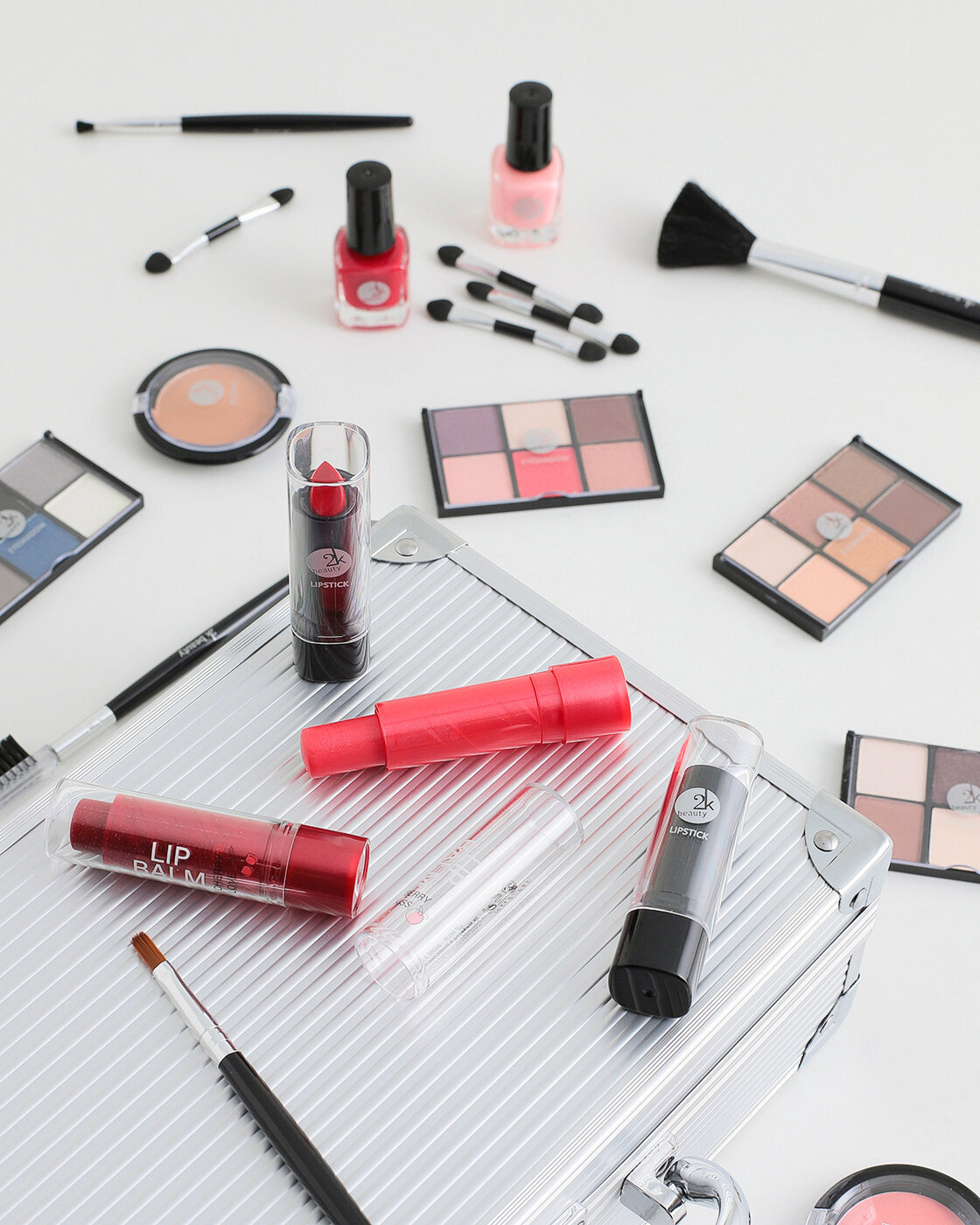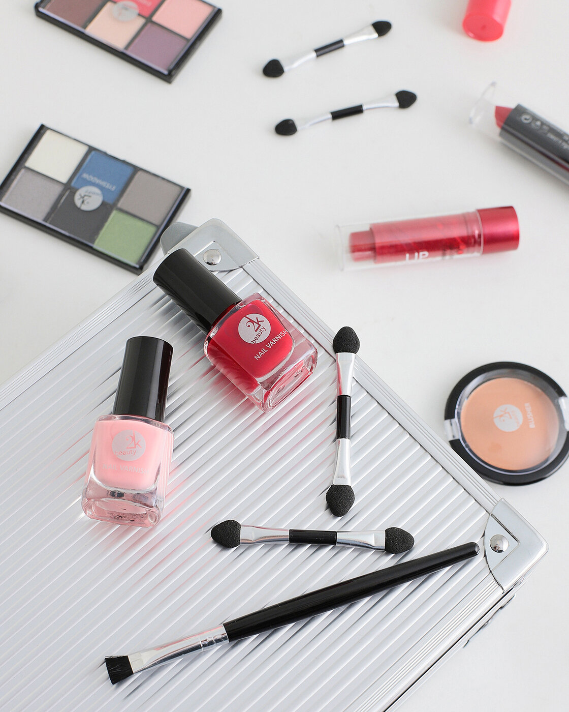 | В наборе | 24 оттенка теней, 2 цвета румян, 2 оттенка помады, 2 бальзама для губ, 2 лака для ногтей, набор кисточек для макияжа лица, глаз и губ, косметический чемоданчик |