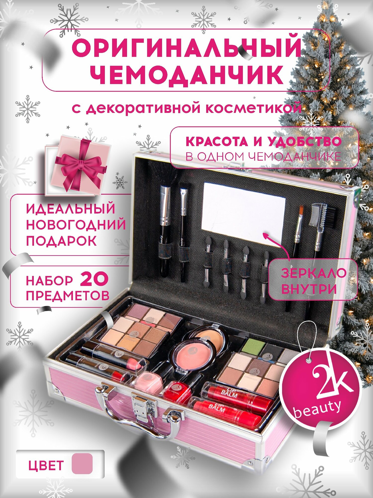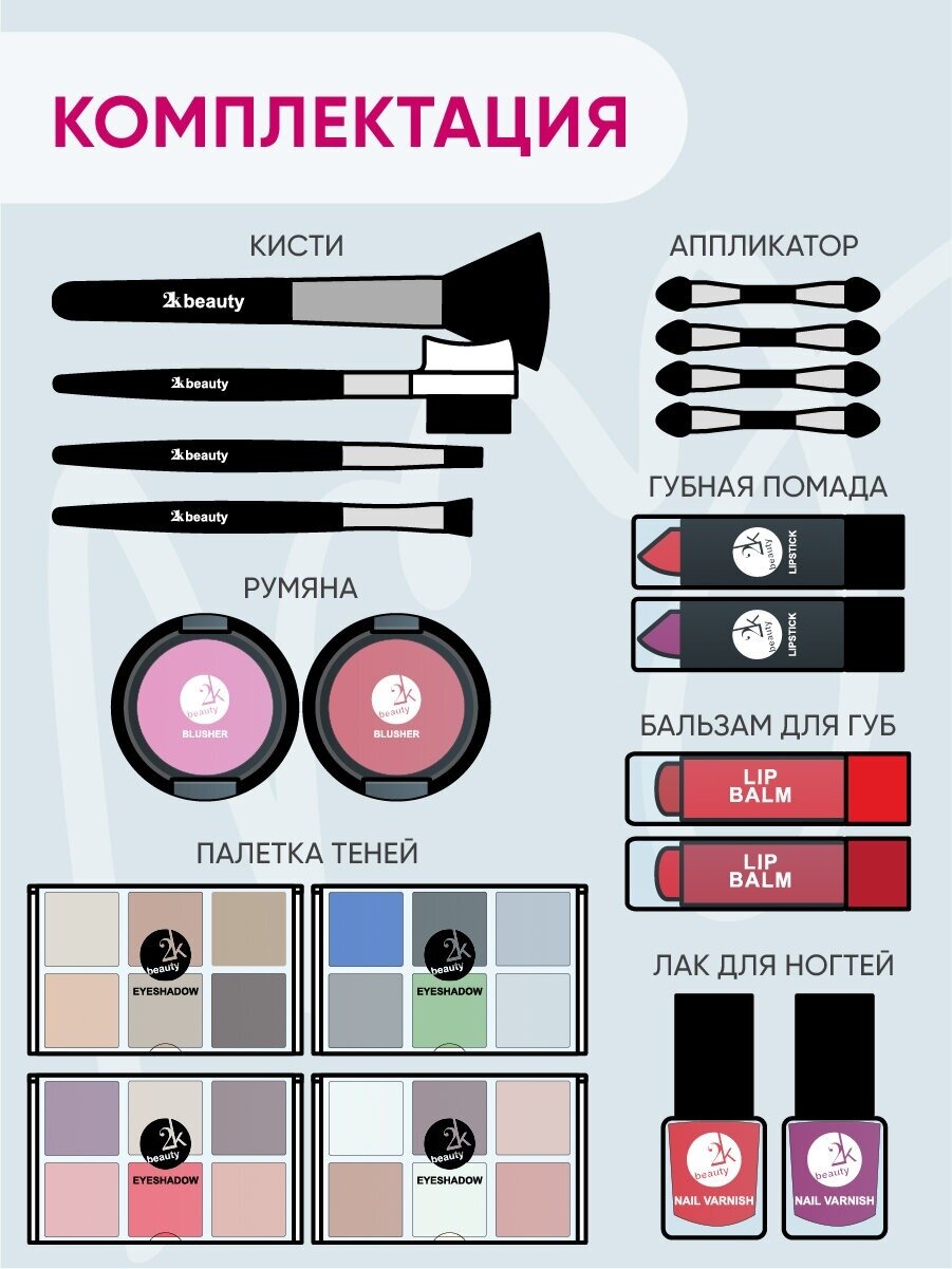 2K Beauty / Состав набора: Палетки Теней для Век, Румяна, Помада, Лак для Ногтей / Подарочный Косметический набор №15 (Barcelona Pink) интересное: