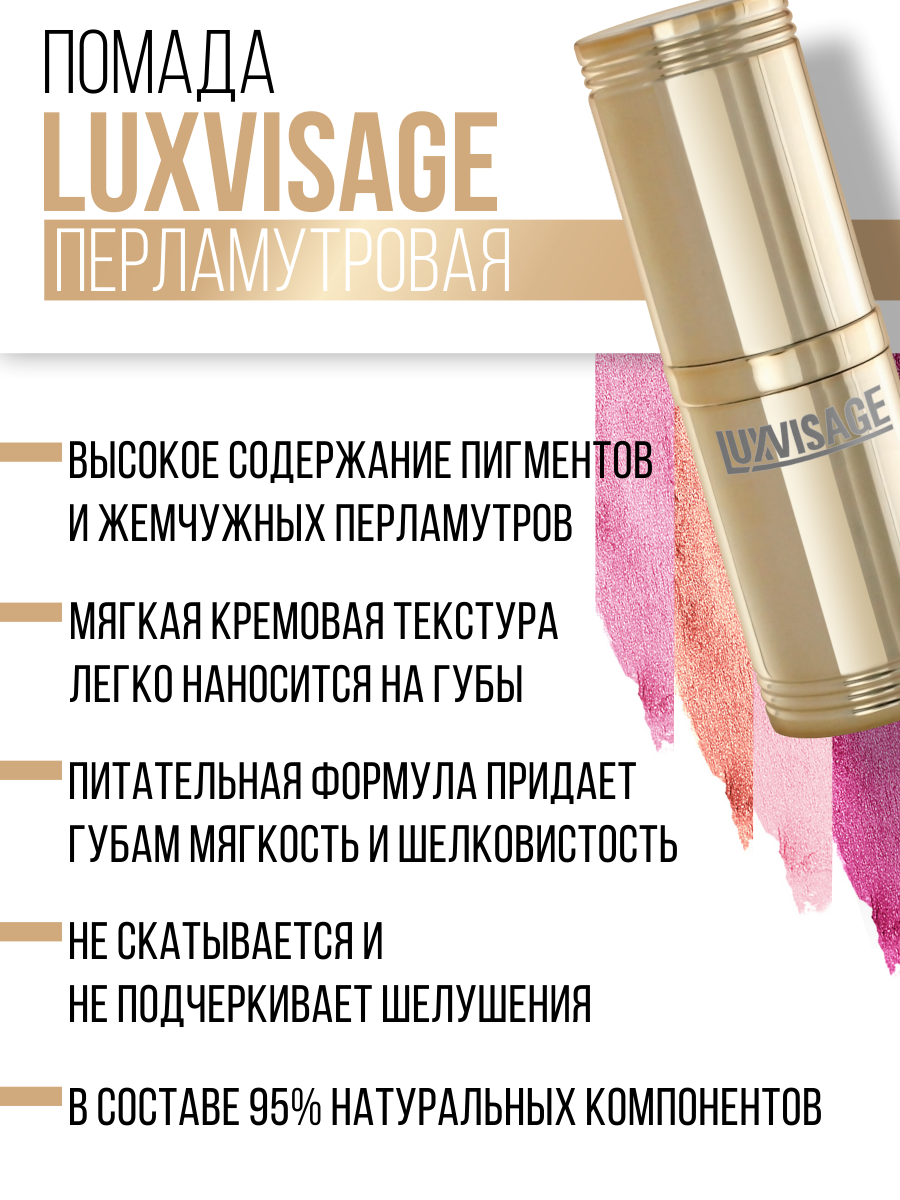 LUXVISAGE Помада для губ перламутровая тон 05 яркий жемчужно-розовый С шиммером 4г