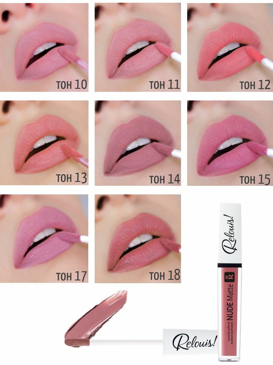 RELOUIS Губная помада NUDE MATTE тон 10 жидкая матовая / макияж