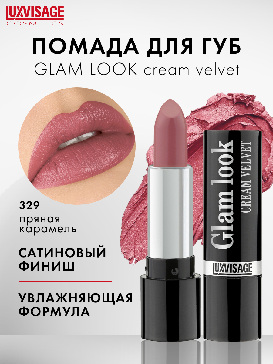 Купить LUXVISAGE Помада для губ GLAM LOOK CREAM VELVET сатиновый финиш, тон 329 пряная карамель