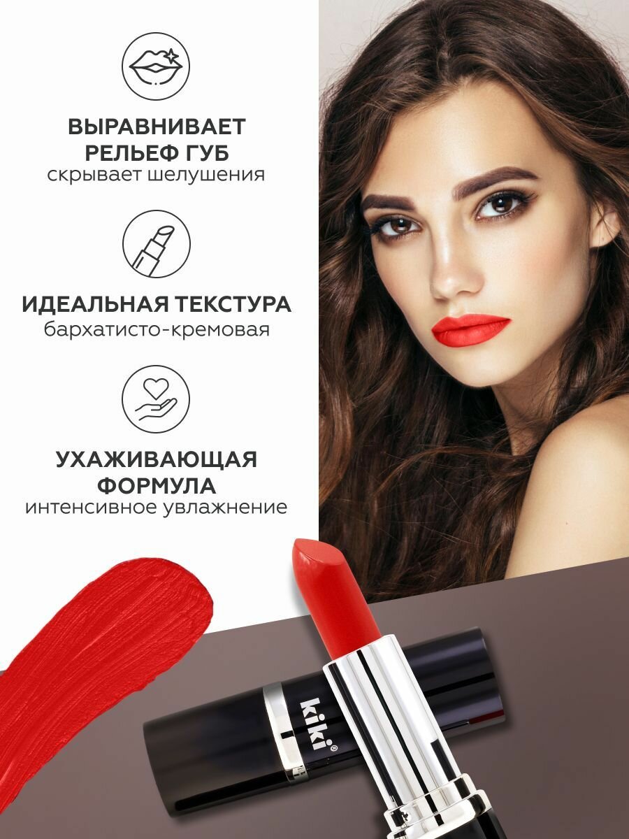 Губная помада kiki VELVET тон 810 ярко-красный стойкая увлажняющая кремовая текстура стик, кики