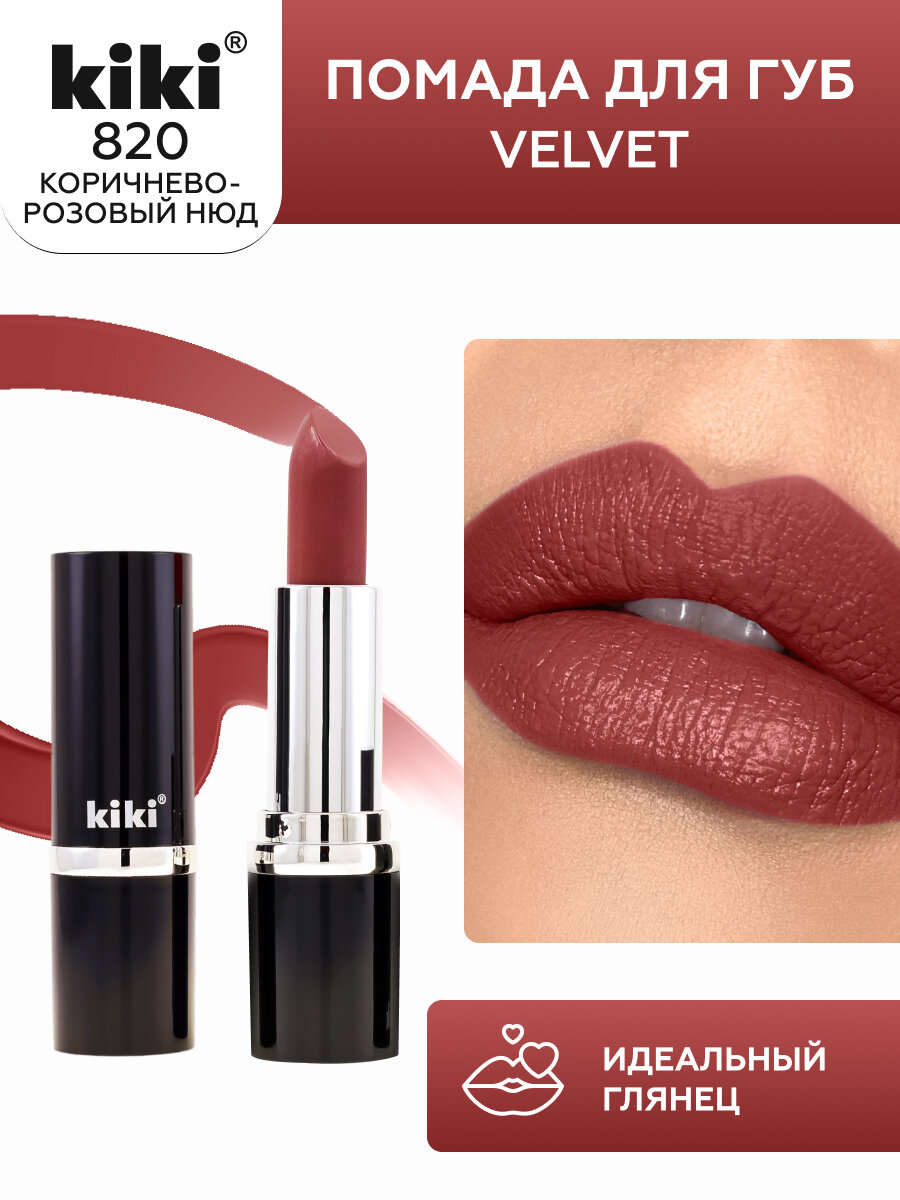 Губная помада kiki VELVET тон 820 коричнево-розовый стойкая увлажняющая кремовая текстура стик, кики