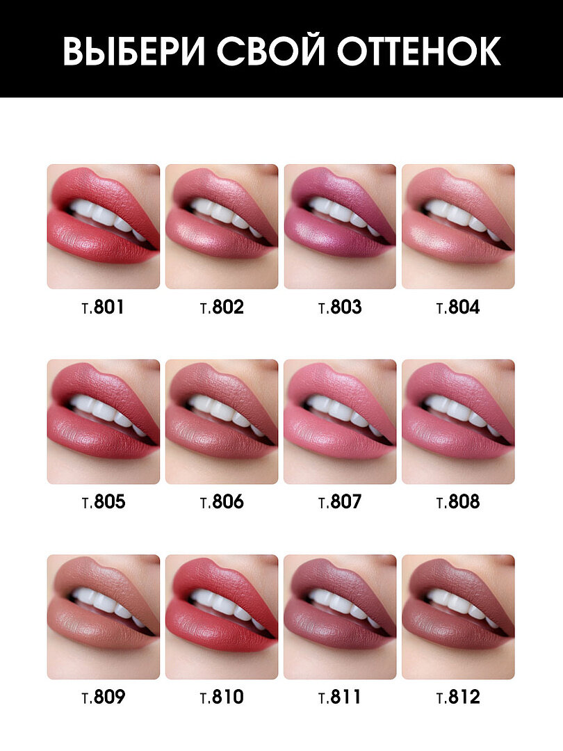 | Дополнительная информация | Матовое покрытие, насыщенный стойкий цвет. Легко наносится, придает губам мягкость и бархатистость, сияющий блеск и ощущение комфорта. Увлажнение губ в течение всего дня. |