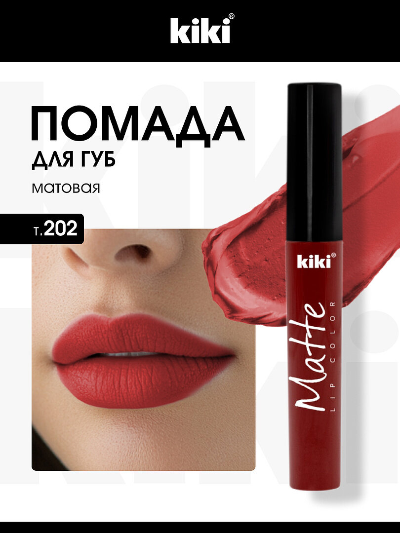 СохранитьЖидкая помада для губ kiki Matte lip color тон 202 красный стойкая увлажняющая матовая с маслом жожоба и витамином Е , кики интересное: