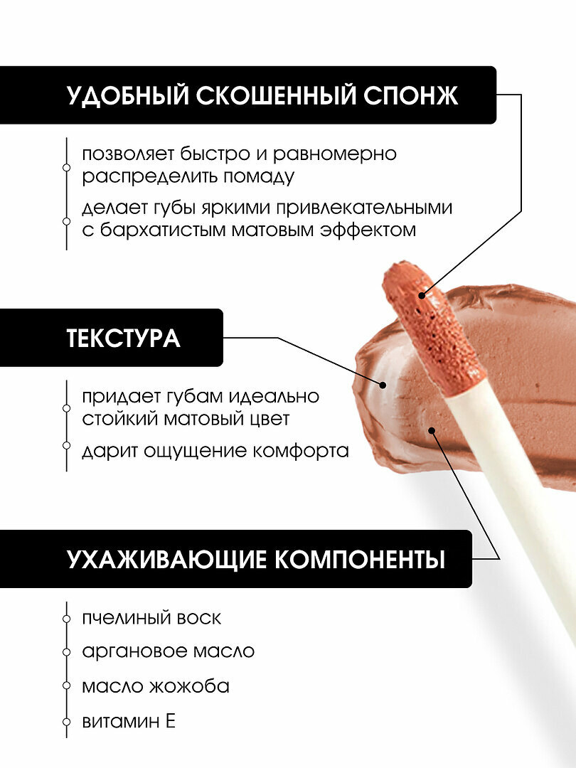 СохранитьЖидкая помада для губ kiki Matte lip color тон 203 бежевая, стойкая матовая, увлажнение, масло жожоба, витамин Е интересное: