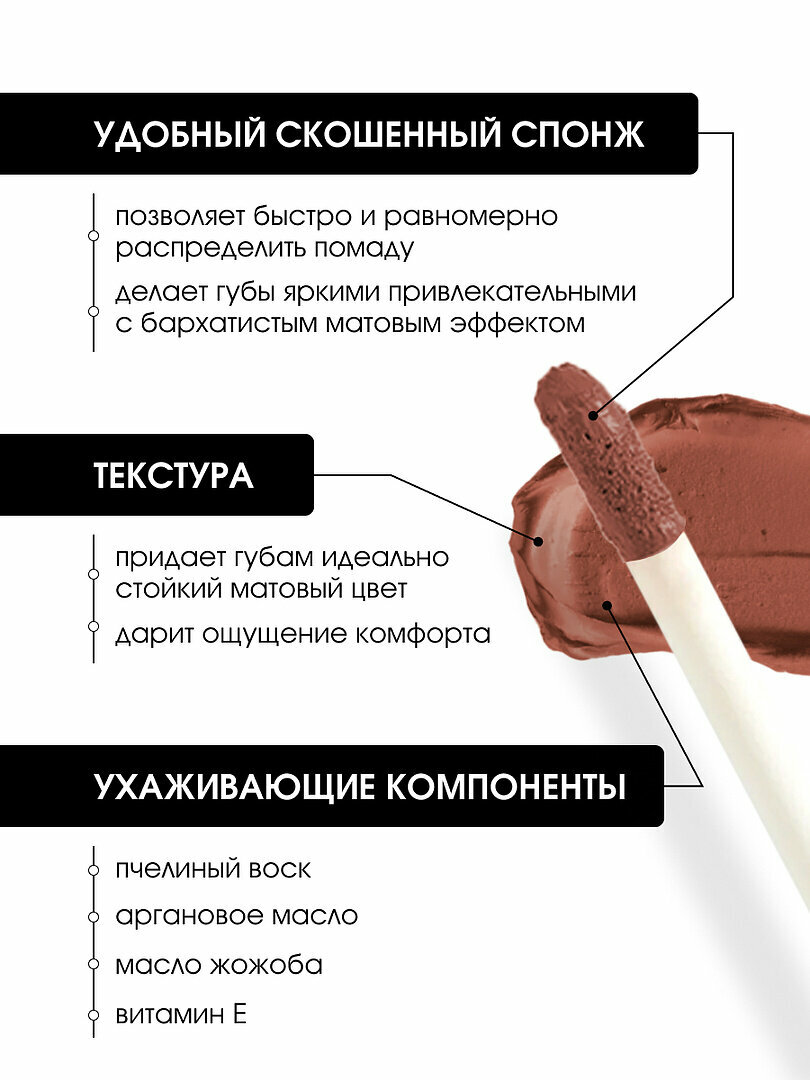 СохранитьЖидкая помада для губ kiki Matte lip color тон 211 карамель, стойкая увлажняющая матовая с маслом жожоба и витамином Е интересное: