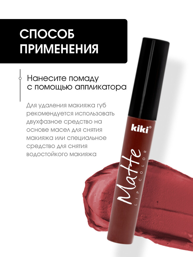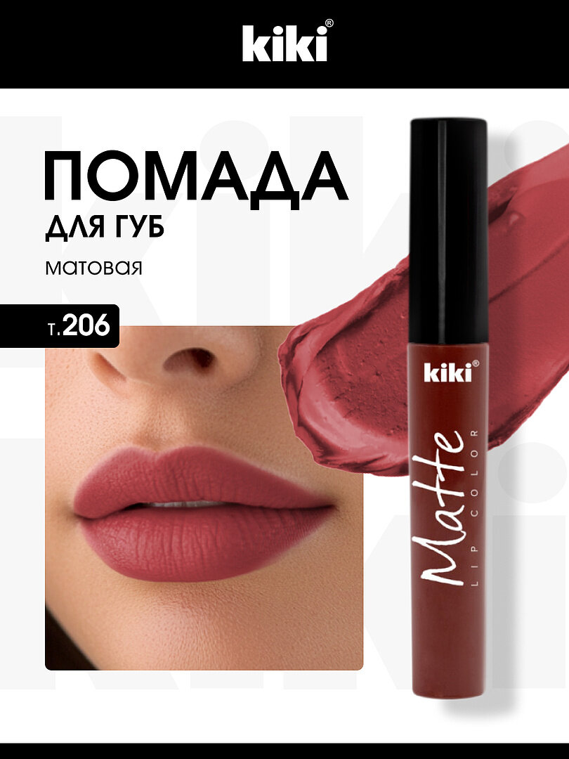 СохранитьЖидкая помада для губ kiki Matte lip color тон 206 каштановая, стойкая увлажняющая матовая с маслом жожоба и витамином Е интересное: