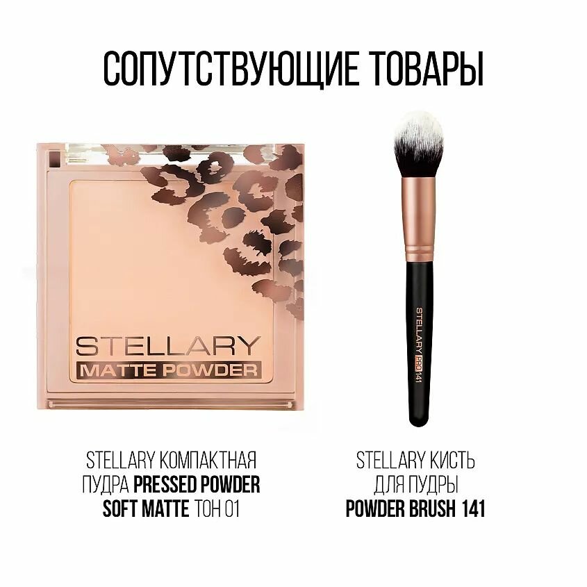 | Способ применения | Для полупрозрачного эффекта наносите кистью для пудры STELLARY PRO №141 или кистью кабуки STELLARY PRO №155. Для более плотного покрытия наносите велюровым спонжем STELLARY PRO. |