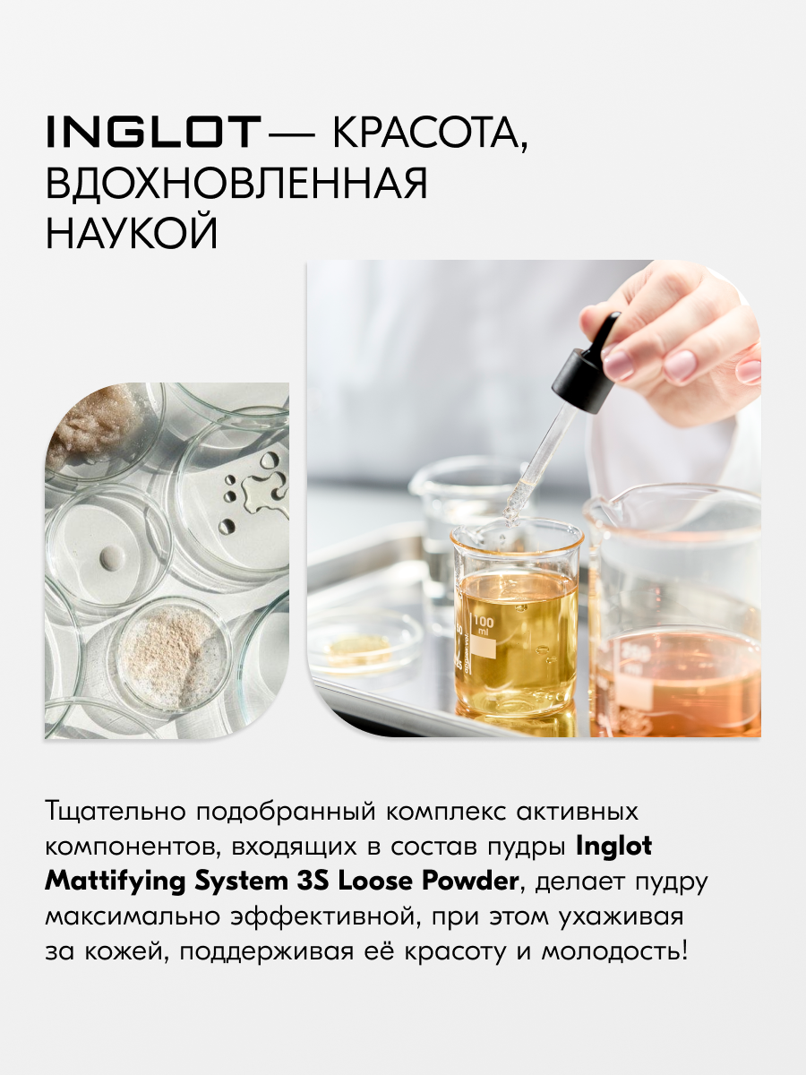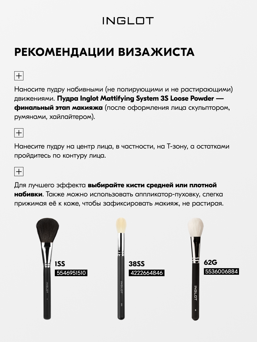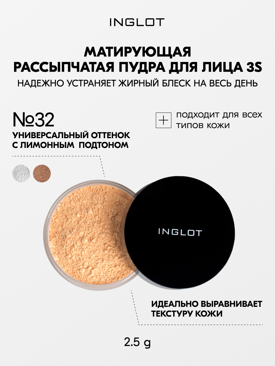 Рассыпчатая пудра матирующая / Inglot, Mattifying loose powder 3S / 2.5мл