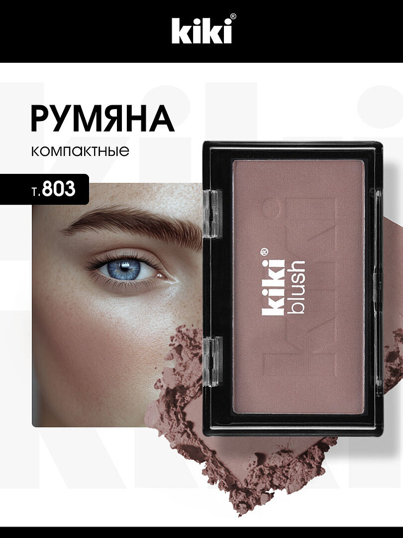 Румяна для лица KIKI BLUSH, тон 803, светло-шоколадный, компактные, матовые, пудровые, шелковистая структура / кики