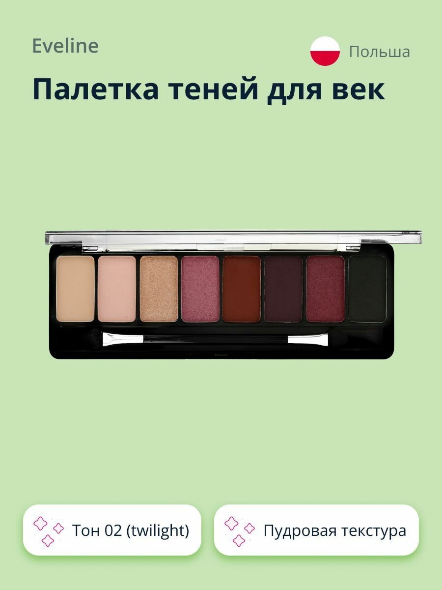 Тени для век EVELINE EYESHADOW PROFESSIONAL PALETTE палетка №02-TWILIGHT (8 тонов), 9,6 гр