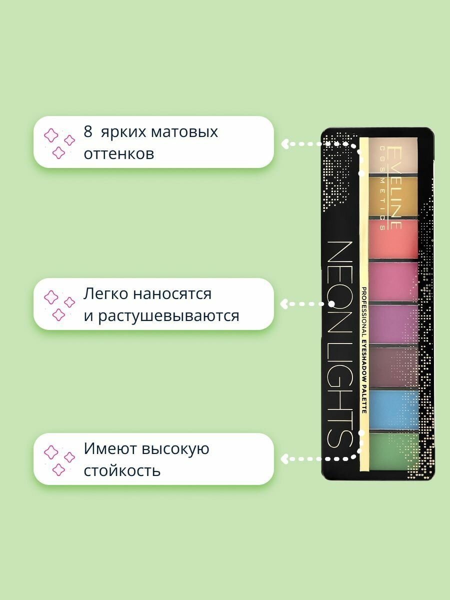Тени для век EVELINE EYESHADOW PROFESSIONAL PALETTE палетка №06-NEON LIGHTS (8 тонов), 9,6г