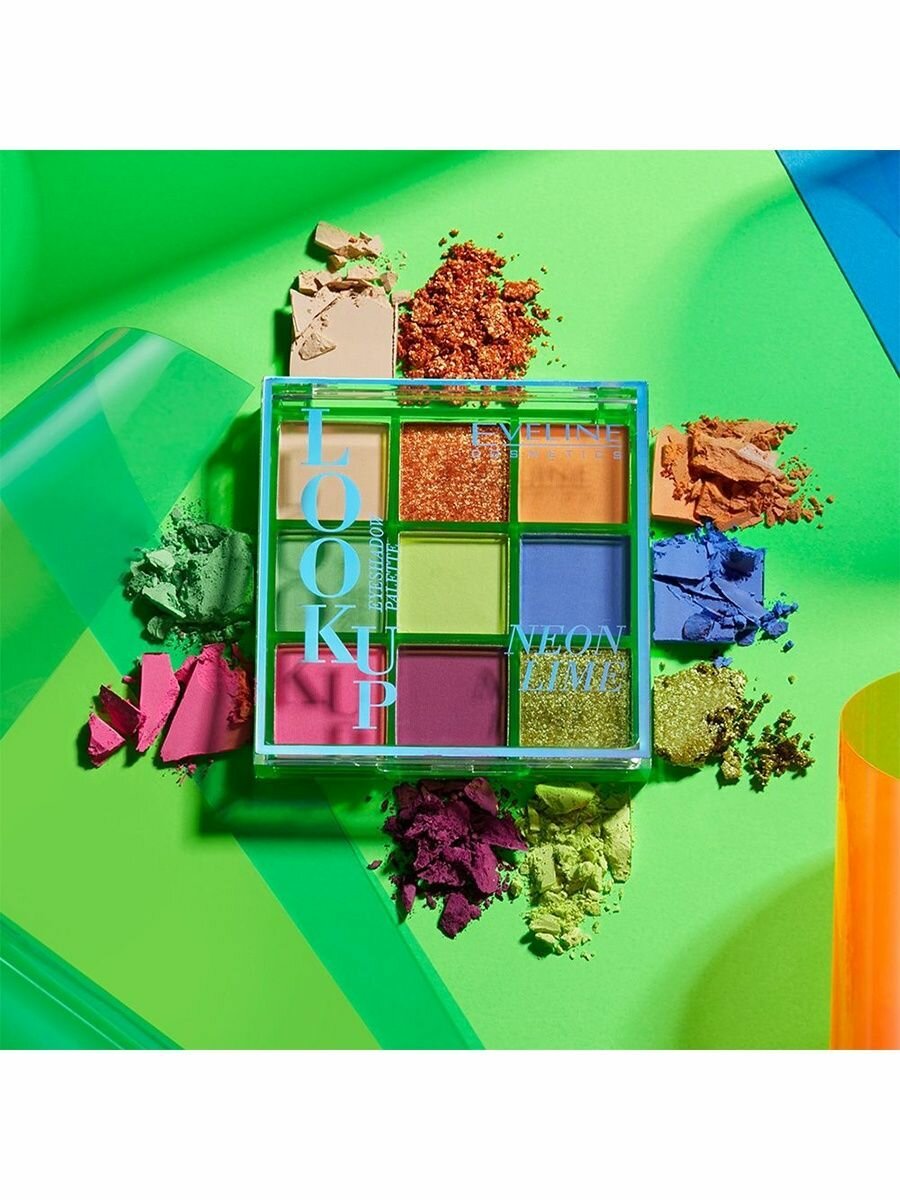 Тени для век EVELINE LOOK UP NEON LIME 10 неоновые палетка матовые шиммер ,8г
