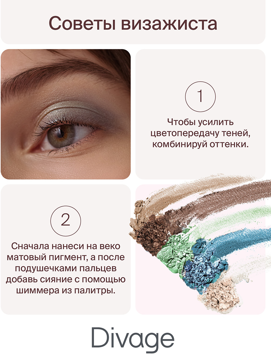 СохранитьDivage Палетка теней для век Symbolism of Colors, тон Mint&Wood интересное: