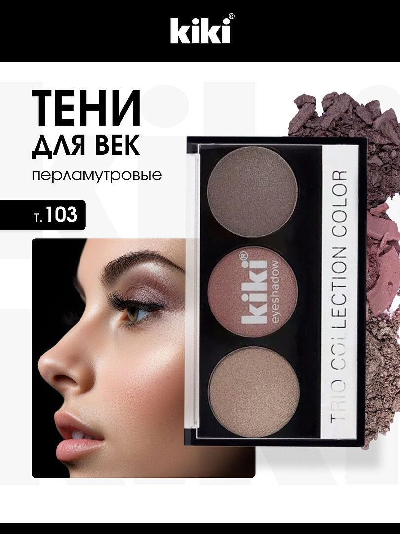 Тени для век kiki Shadow Trio Collection Color тон 103 стойкая палетка 3 цвета с аппликатором для растушевки бежево-коричневый ирис оливковый, кики