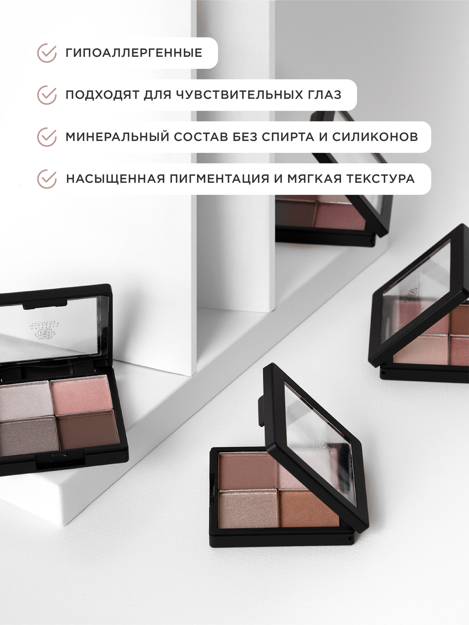 | Особенности | гипоаллергенные / минеральные / не тестируются на животных / протестированы дерматологически |