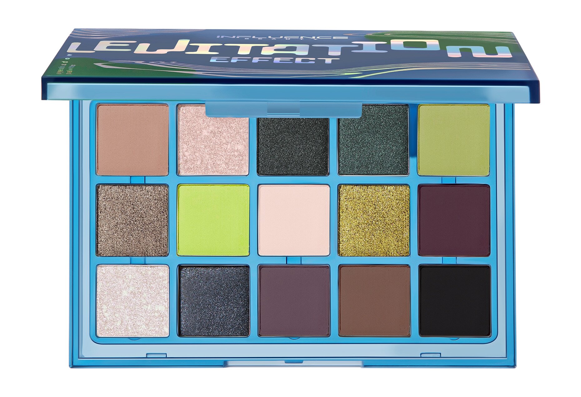 Палетка теней INFLUENCE BEAUTY Effect Levitation 01, 15 оттенков, высокопигментированная текстура, матовые и сиющие оттенки, 15г. интересное: